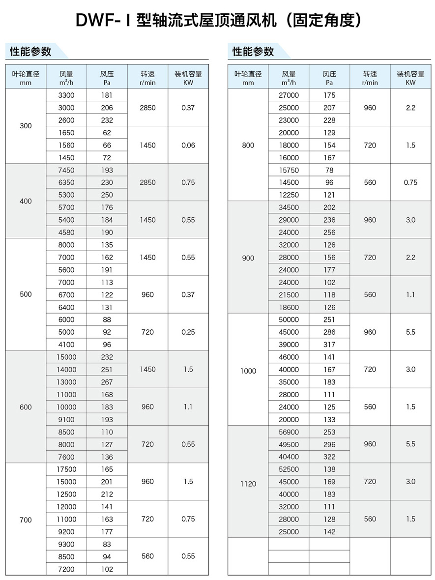 屋頂式軸流通風機,型式規(guī)格多,應用范圍廣泛,可根據(jù)使用場合的壓力、風置和噪聲的不同要求選用。 DWF-I軸流式屋頂風機,具有風置大、壓力較離心式風機低的特點,同時根據(jù)用戶需要還可設(shè)計成雙 向旋轉(zhuǎn)可逆,正反工況等效的特點。