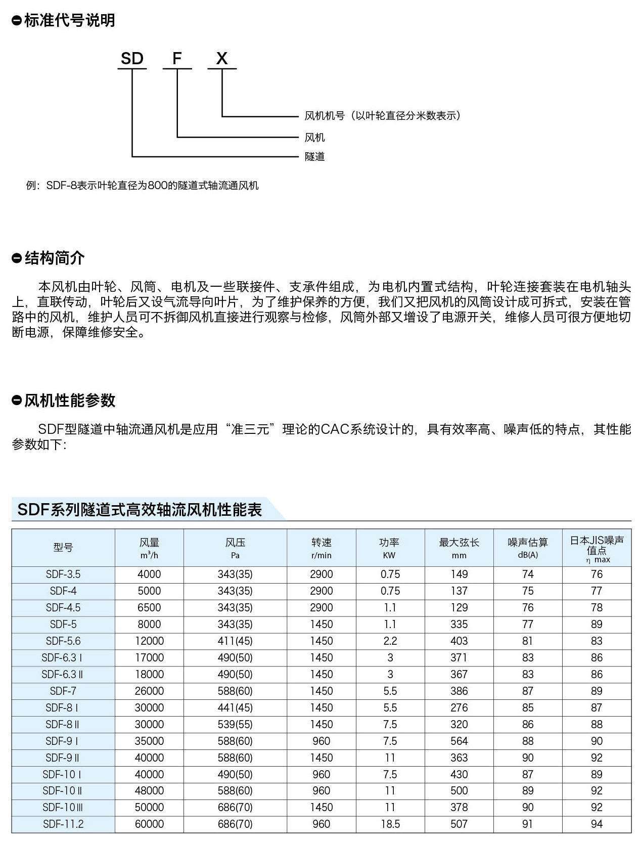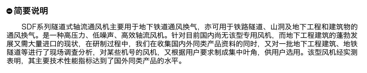SDF系列隧道式軸流通風機主要用于地下鐵道通風換氣,亦可用于鐵路隧道、山洞及地下工程和建筑物的 通風換氣。 是一種高壓力、低噪聲、高效軸流風機。 該型風機經(jīng)實測 表明,其主要技術(shù)性能指標達到了國外同類產(chǎn)品的水平。